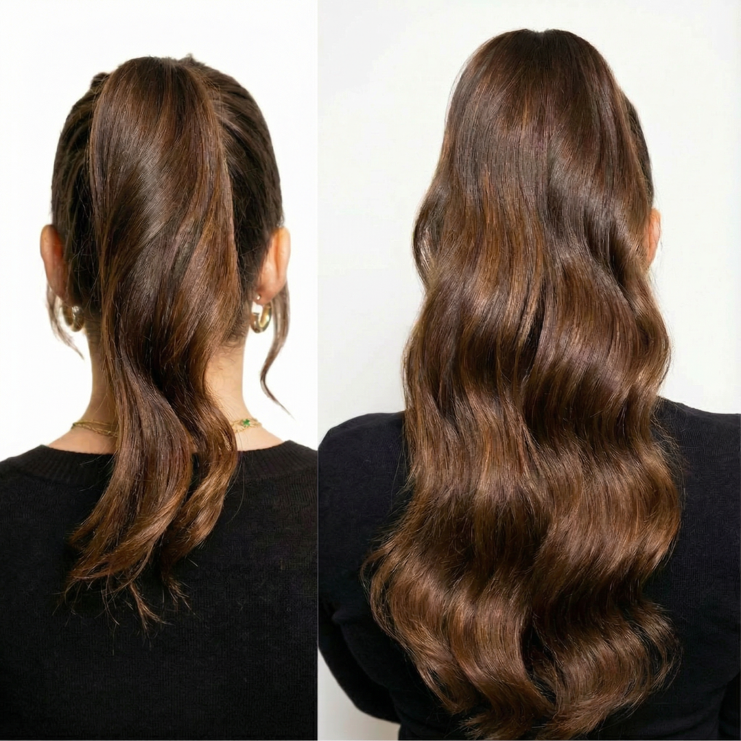 That’s why we designed a “clip in” to mimic our mini professional weft. Our custom product; Volume Clip ins. Whether you are having a break from semi-permanent track extensions or your sick of the uncomfortable clip in feeling from your bulky wefts- these have been designed for YOU!