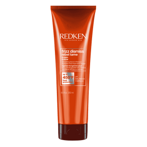 Redken's Frizz Dismiss Rebel Tame is a hydrating and heat protective leave-in cream for frizzy hair. The Frizz Dismiss hair care collection features a series of frizzy hair products and treatments which provide smoothing benefits and humidity protection for all hair types.
